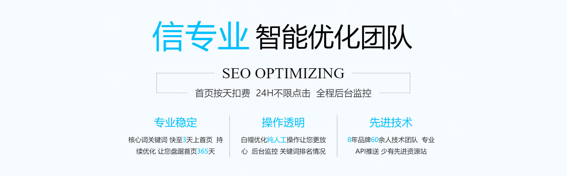 關鍵詞優(yōu)化,無效果退款!專業(yè)技術管控賬戶,減少無效點擊,全方位網(wǎng)絡推廣,讓您的信息遍布互聯(lián)網(wǎng)。